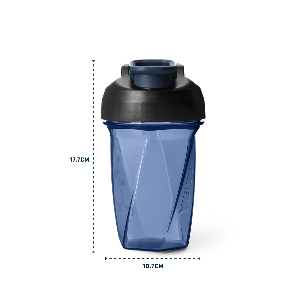 The Yonder® Shaker Bottle is built to mix smooth shakes and keep pace with your toughest workouts. Featuring patented Helimix® Technology, its unique wall design mixes powders smoothly without a whisk or screen. The 100% leakproof construction, covered chug spout, and quick access cap make it ideal for gym bags, commutes, and busy routines. The Shaker Bottle is BPA-free. The vessel is made with 75% recycled plastic. It's dishwasher safe, and clearly marked for easy measuring. Note: The shaker cap is not compatible with other Yonder® water bottles.