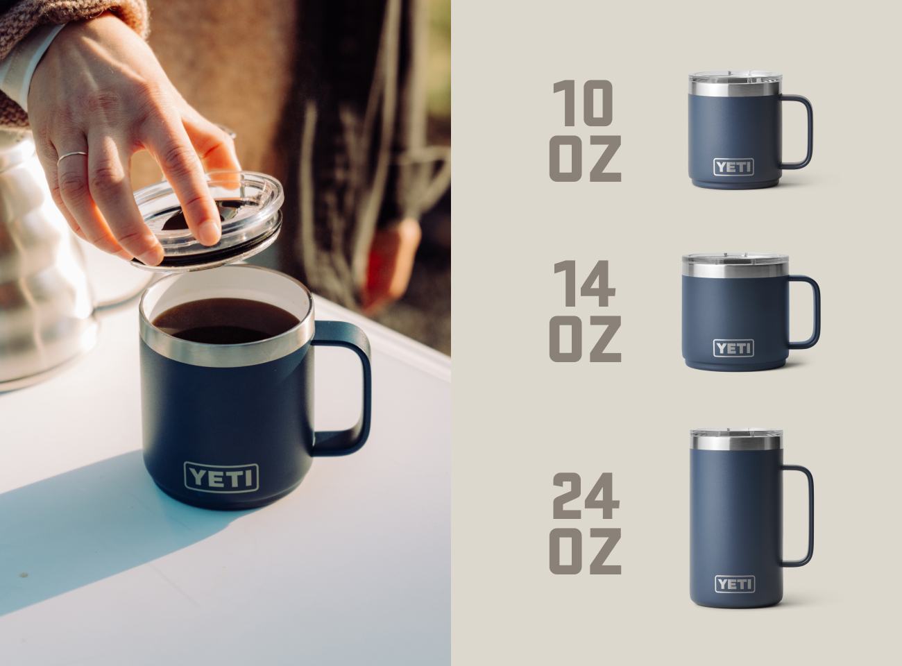 Koffein und Abenteuer in der Wildnis – das passt einfach zusammen. Ein Kaffee aus der Stempelkanne bei Tagesanbruch, ein heißer Kaffee nach stundenlanger Wanderung, der perfekte Espresso im Freien – ein köstlicher Kaffee in der freien Natur sorgt für einen perfekten Start in den Tag. Mit YETI® Kaffeebechern und -tassen bleibt dein Getränk genau so, wie du es magst: dampfend heiß oder eiskalt. Und weil wir wissen, dass eine Tasse nie genug ist, haben wir eine Reihe von Kaffeetassen und -bechern entwickelt, die sich perfekt für den Campingplatz, die Berghütte und den Weg zur Arbeit eignen.
